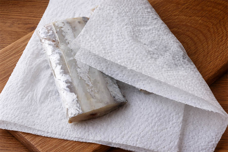 갈치를 깨끗하게 씻은 뒤 키친타월로 꾹꾹 눌러 물기를 제거합니다.