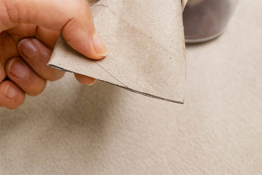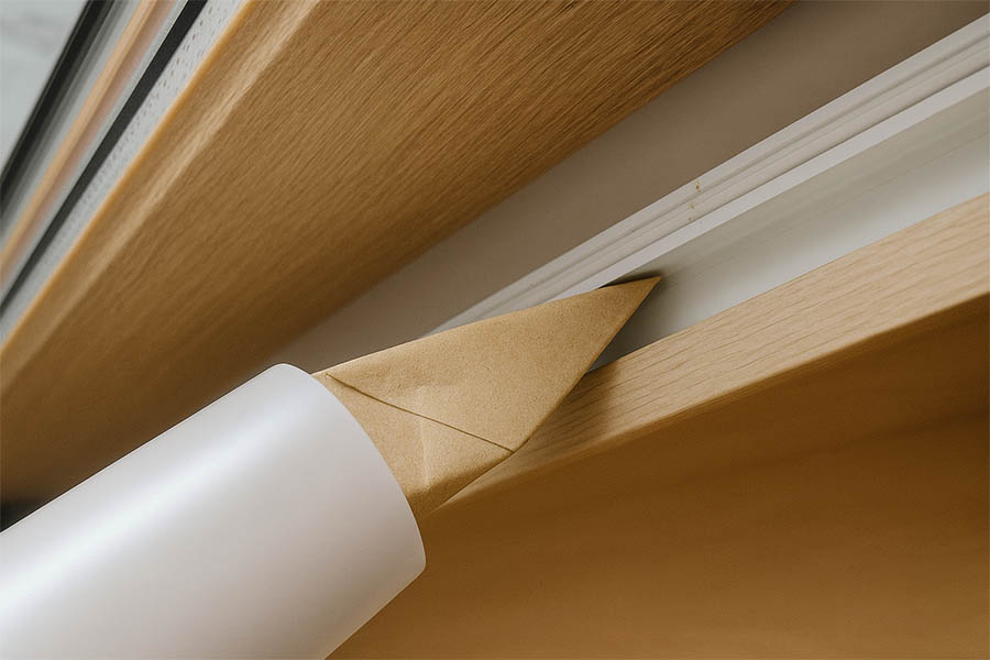 휴지심은 종이라 형태가 쉽게 변형돼 창틀 틈에 딱 맞게 만들 수 있습니다. 끝을 손가락으로 눌러 평평하게 만들면 좁은 틈에도 무리 없이 들어갑니다.