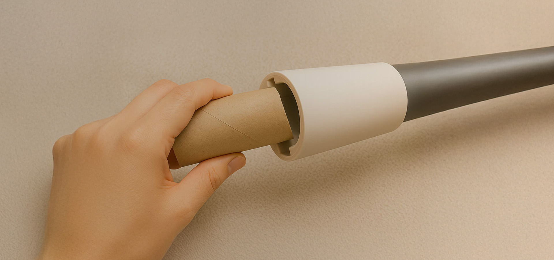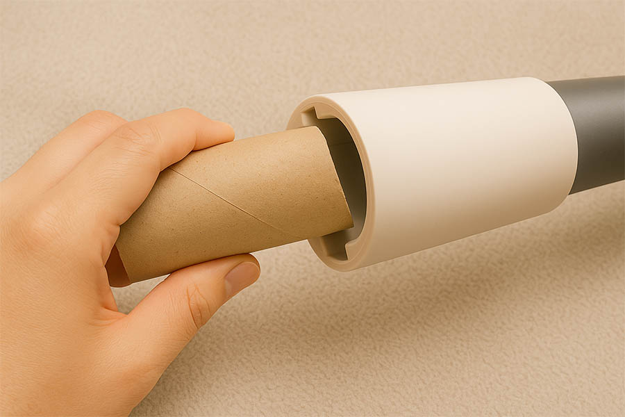 ➋ 청소기 흡입구에 휴지심 끼워주세요.