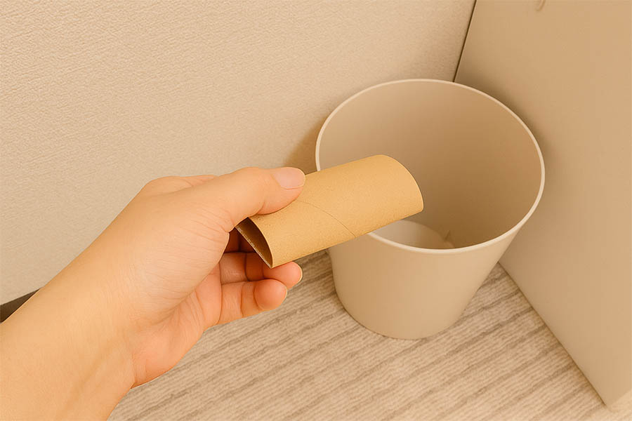 ➎ 사용한 휴지심은 바로 버리면 끝!