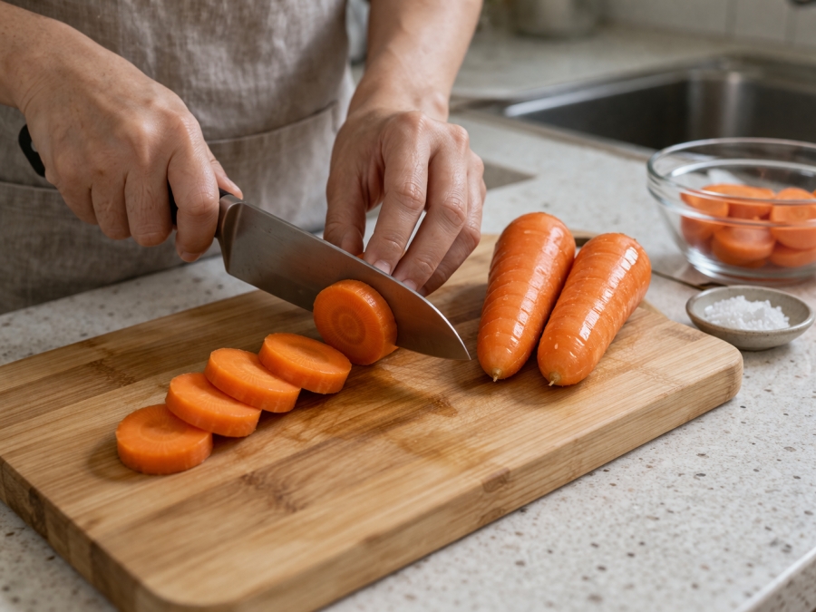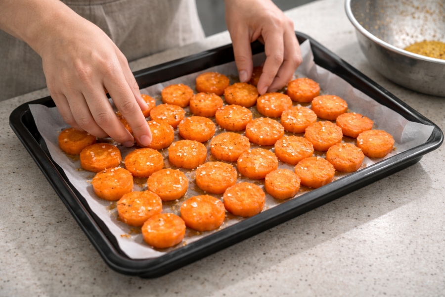 당근을 열로 조리하면 천연 당분이 농축되면서 단맛이 올라갑니다. 기름을 살짝 더하면 지용성 영양소인 베타카로틴 흡수율도 높아집니다. 그래서 '구운 당근 = 건강 + 맛' 이 조합이 완성되는 거죠.