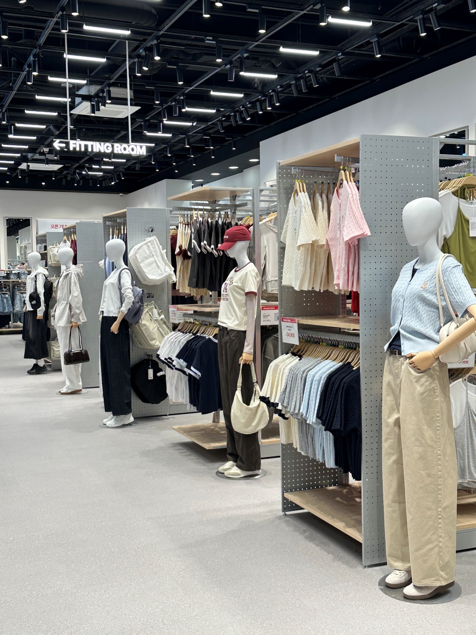 롯데프리미엄아울렛 김해점 2층에 위치한 스파오 김해점은 약 668㎡(약 200평) 규모의 대형 매장이다.